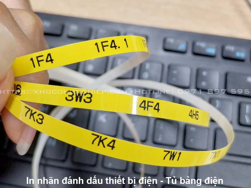 In nhãn dán (Label Tape): Nhãn tự dính dùng để dán lên Aptomat, Relay, Terminal hoặc bảng tên thiết bị.