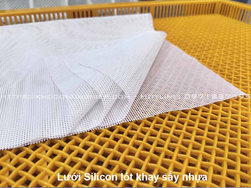 - Lưới Silicon chịu nhiệt chống dính: Là yếu tố then chốt cho các sản phẩm sấy dẻo có đường. Lưới silicon giải quyết triệt để vấn đề dính khay – nguyên nhân chính gây ra thất thoát sản phẩm và gián đoạn sản xuất trong mùa cao điểm. Công cụ này giúp tăng tốc độ thu hồi thành phẩm và giảm chi phí vệ sinh, bảo trì.
