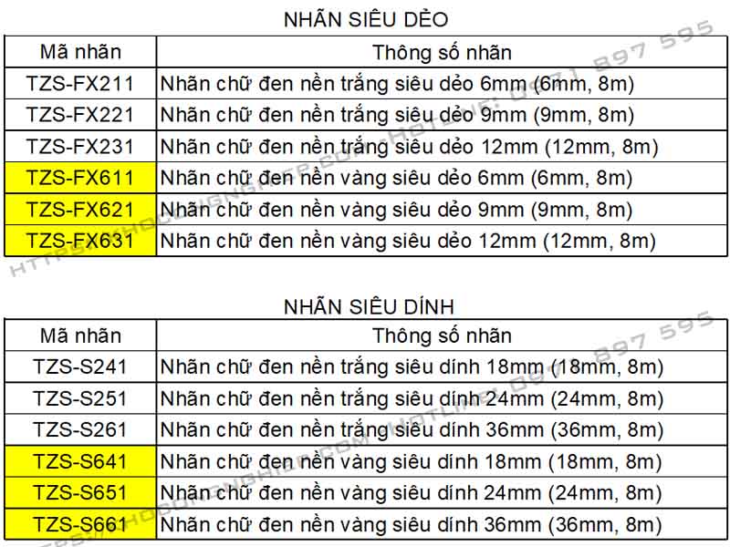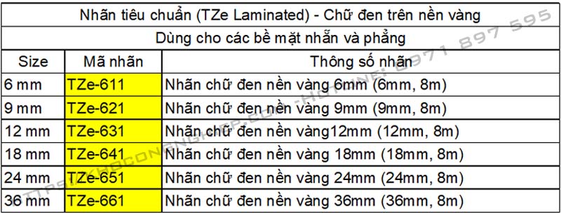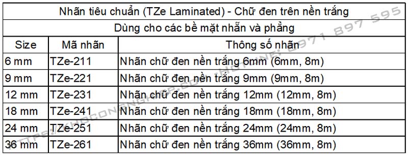 | Khổ nhãn | 6mm, 9mm, 12mm, 18mm, 24mm, 36mm | Tối đa 100mm, Có thể cắt nhãn có khổ tùy biến theo hình dáng và kích thước linh động |