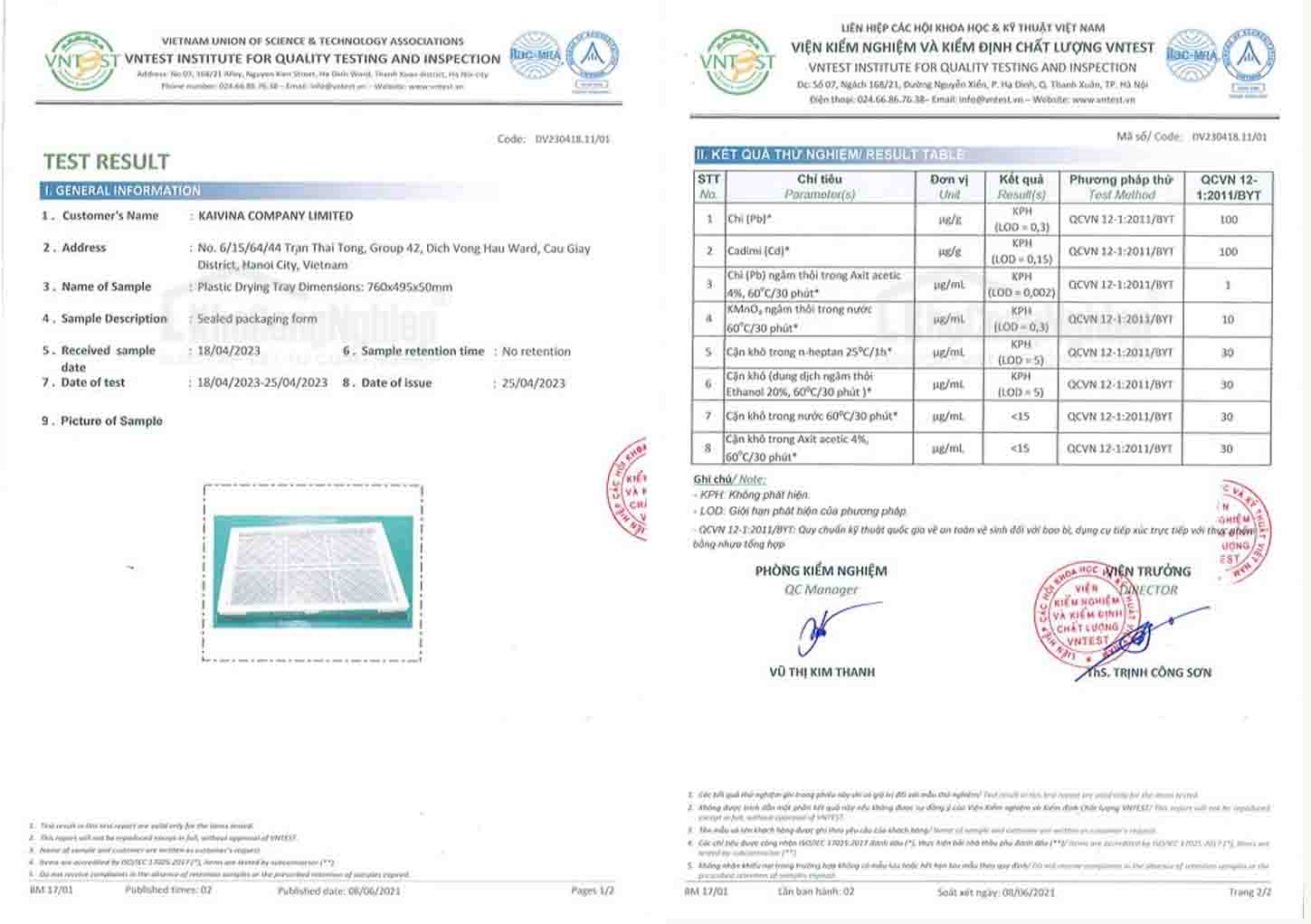 Chúng tôi cam kết chỉ sử dụng hạt nhựa PP nguyên sinh Medical Grade cho toàn bộ dòng khay sấy nhựa 76x50cm.