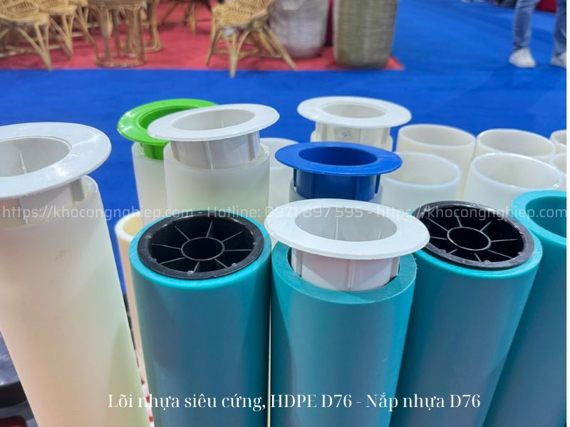 • Lõi nhựa PE/PP/PVC D76 nhiều kích thước (Có loại siêu cứng mới), nắp nhựa D76 – dùng trong sản xuất bao bì, in ấn, cuộn màng: