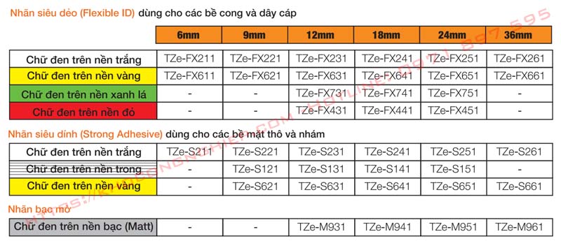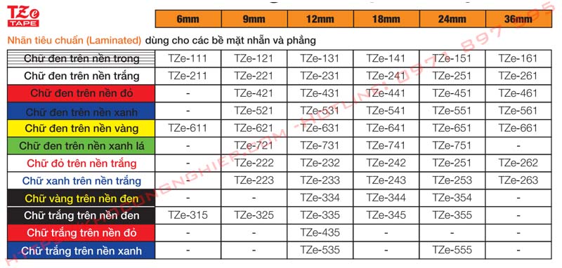 In nhãn đa lớp Brother có kích thước từ 3,5mm -> 36mm
