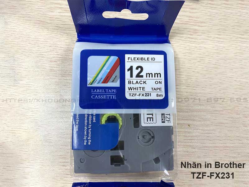 Nhãn TZF-FX231 (Chữ đen trên nền trắng 12mm x 8m) là dòng nhãn Brother siêu dẻo dùng chuyên cho đánh dấu dây điện, bám dính cao cho các bề mặt cong.