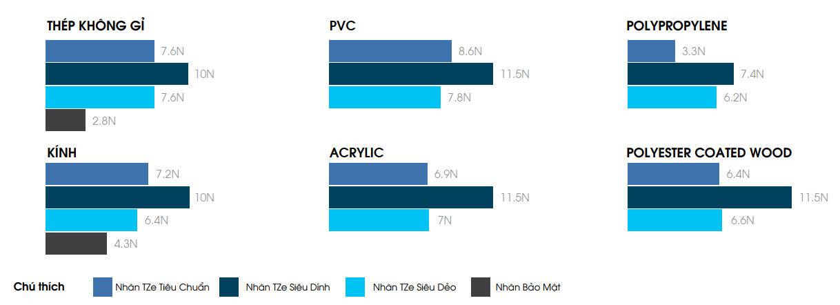 Nhãn siêu dính (S): Lực bám cao gấp ~2 lần; Bám chắc trên bề mặt: sơn tĩnh điện, kim loại sần, bề mặt có bụi nhẹ.