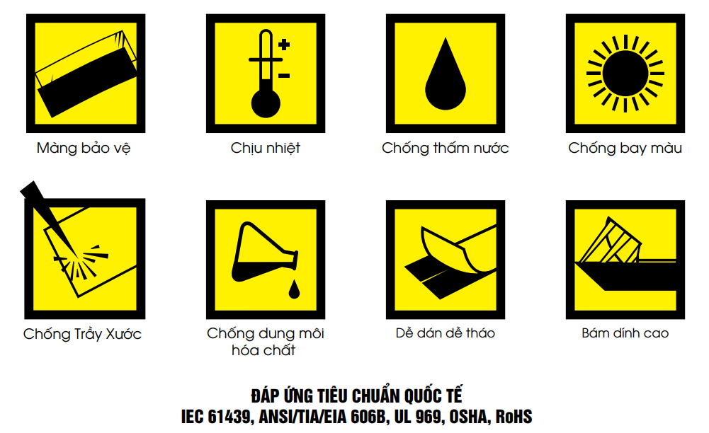 Tiêu chuẩn đáp ứng: IEC 61439 - Nhãn in được chấp nhận trong ngành điện công nghiệp ( Tủ điện Schneider yêu cầu tiêu chuẩn này)